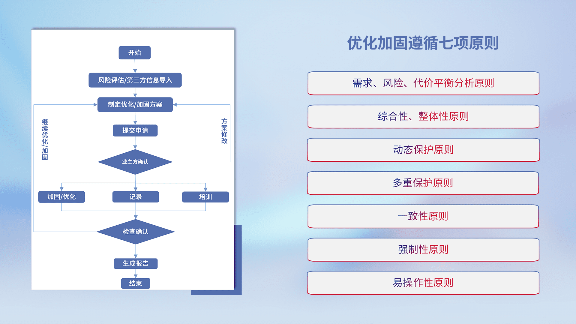 最大程度利用现有资产,,,对评估发现的问题进行封堵与整改,,,防止漏洞被利用,,,提升整体网络安全性,,为客户带来高标准的优化加固服务。。。
