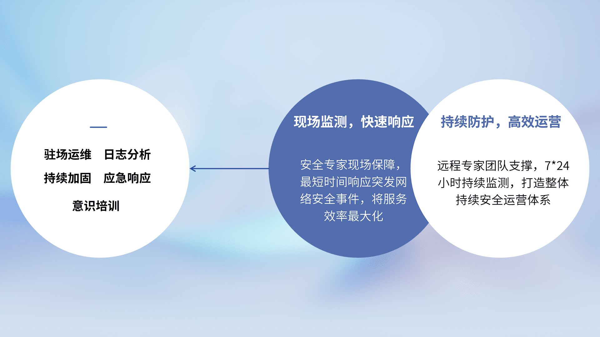 针对客户行业特性,,,,提供专属的一站式安全管理服务,,,帮助客户全面感知网络空间威胁,,,,通过安全专家的线上、、、、线下防护支持,,,,实现风险闭环,,将安全保障常态化,,,为客户打造常态化安全运维运营服务。。。。